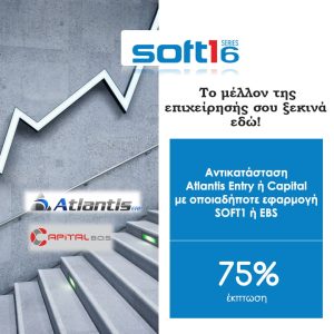Από σήμερα και έως τις 31/5/2026, τίθενται σε ισχύ οι κάτωθι εμπορικές προσφορές για όλους τους πελάτες που θα μεταβούν από τις εφαρμογές Atlantis Entry και Capital, σε οποιαδήποτε εφαρμογή SOFT1 ή EBS.